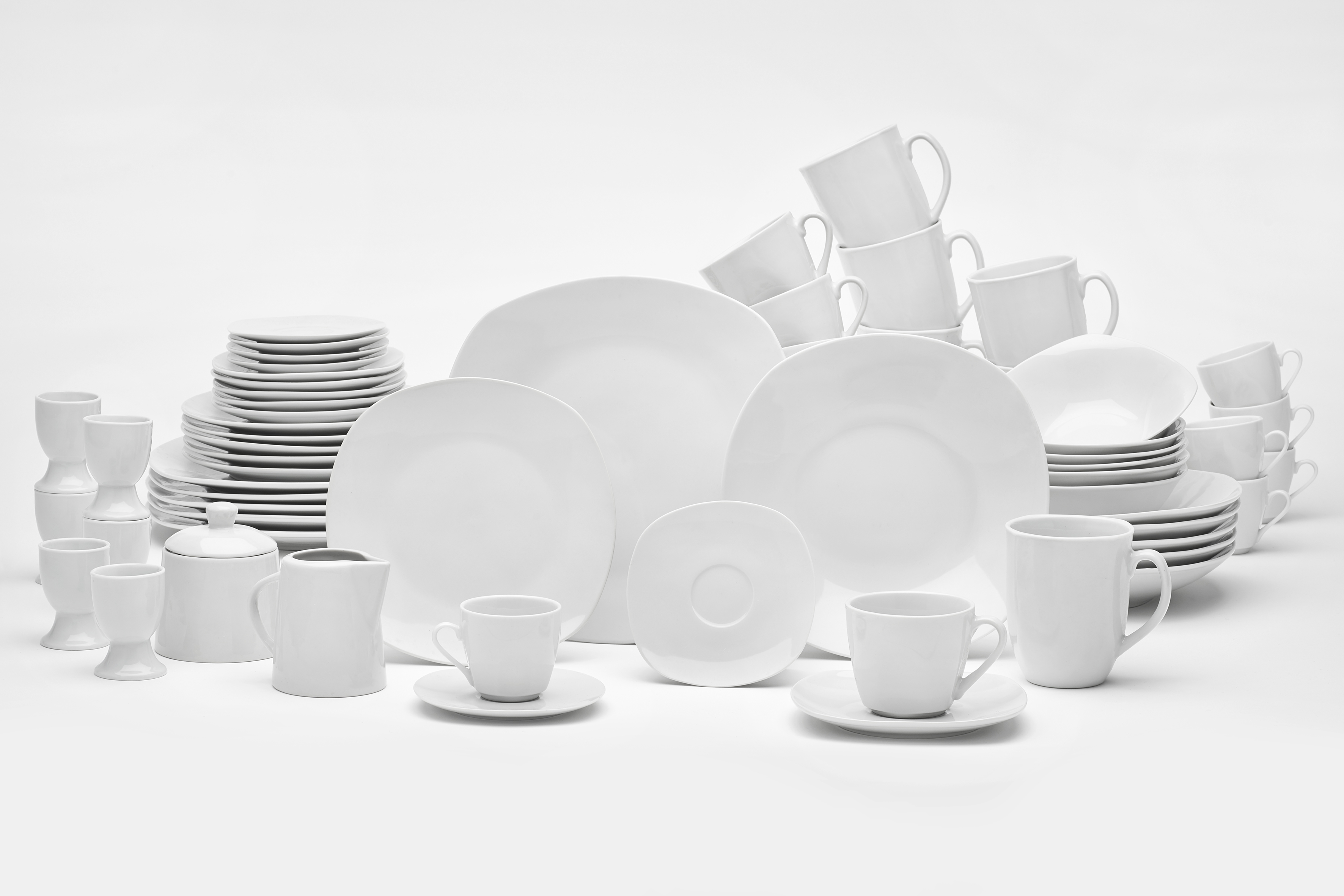 AusführungMaterial: PorzellanFarbe: Weiss mit feinen grau/schwarzen LinienAusstattungKombiservice 32 tlg.- 4 Eierbecher- 4 Kaffeetassen- 4 Unterteller- 4 Kaffeebecher - 4 Dessertteller - 4 Eßteller flach - 4 Suppenteller - 4 Müslischalen Lieferumfang1 Kombiservice 32-teilig ohne Besteck, ohne Dekoration