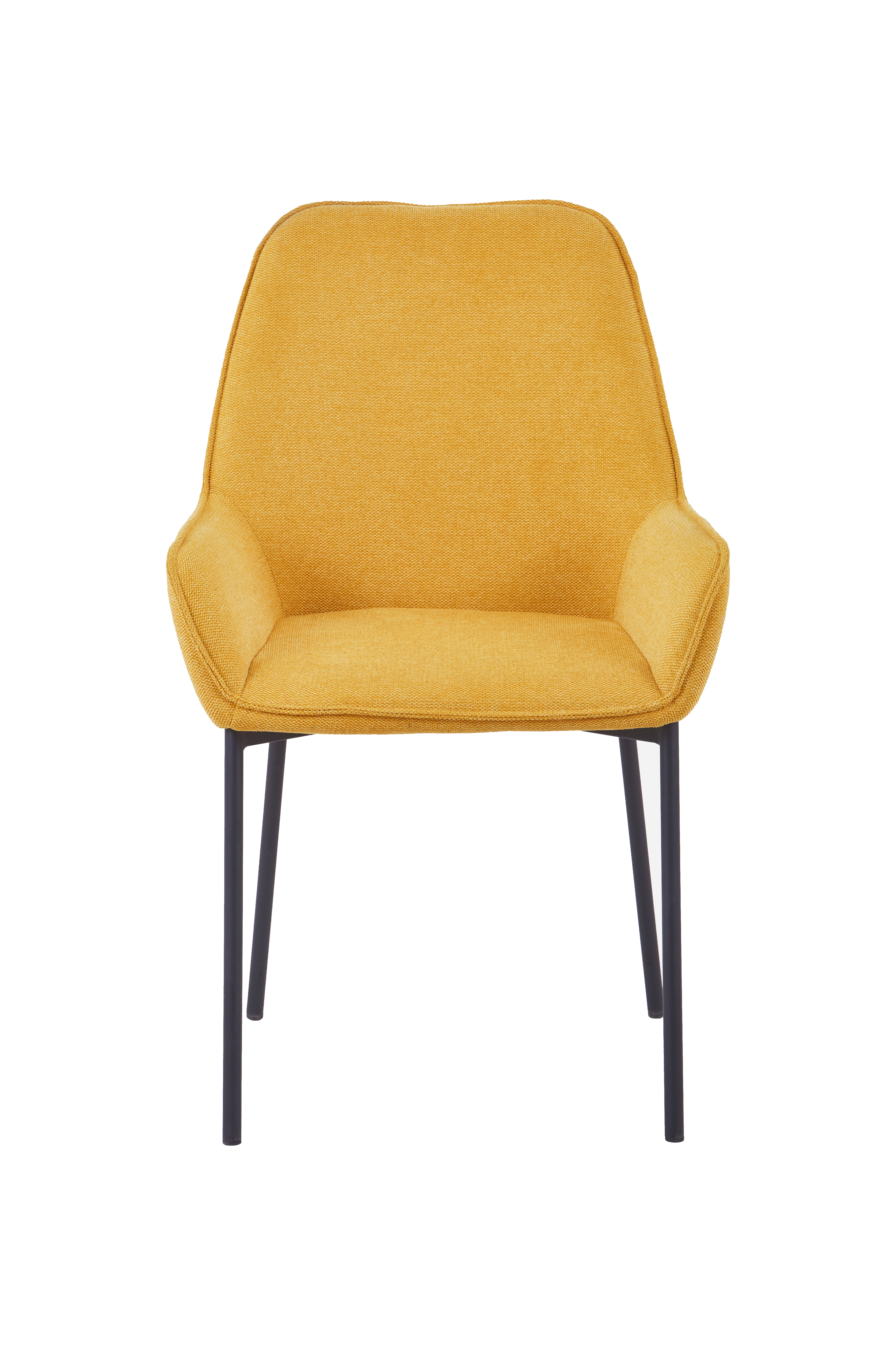 AusführungBezug: Samtstoff in der Farbe gelb aus 100% PolyesterGestell: Metall in schwarz matt pulverbeschichtetAusstattungmit Rückensteppungabgerundeter Rücken- und ArmlehnbereichBelastbarkeitmaximal bis ca. 110 kgLieferumfang1 Stuhl