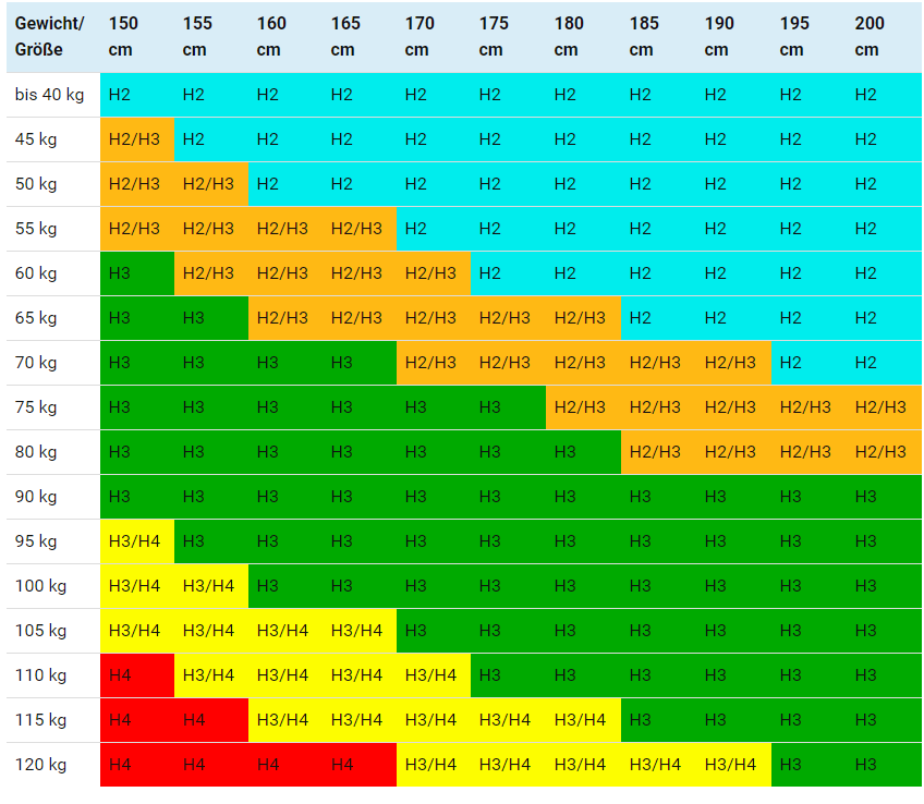 Die auf den Tabellen aufgeführte Härtegarde sind lediglich Anhaltspunkte, an denen man sich orientieren kann.