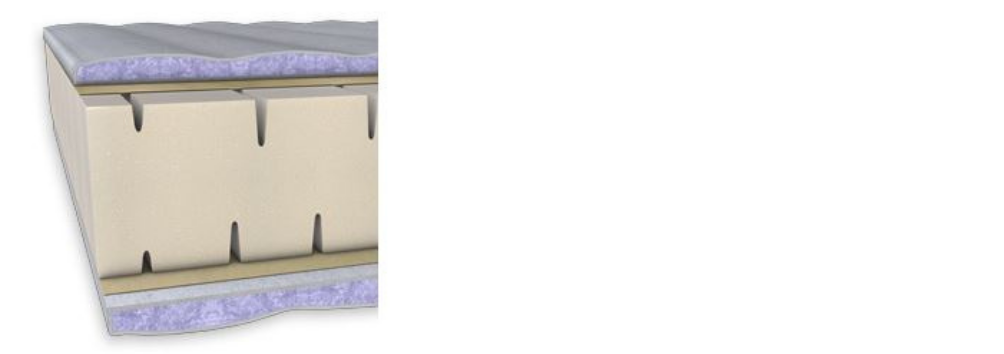 - Aufbau: Comfortflex®-Schaum mit Gelax®-Auflage, in Liegezonen unterteilt durch Einschnitte im Comfortflex®-Schaum.