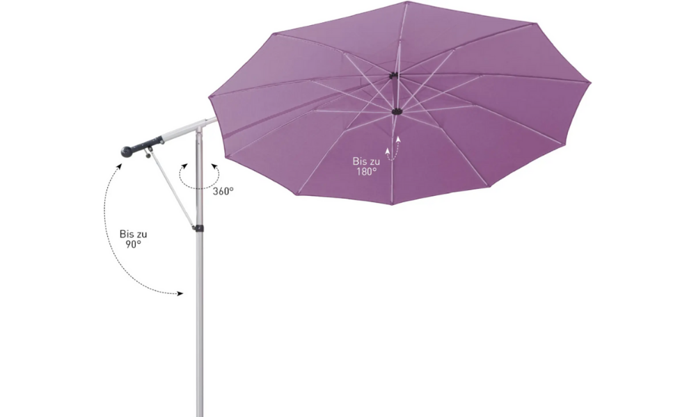 Durch die Beweglichkeit des Schirmdaches können Sie den Schirm optimal gegen die Sonne ausrichten oder ihn als Sichtschutz einsetzen.