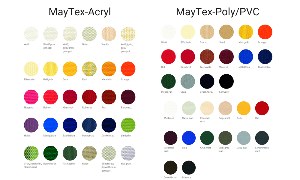 MayTEX-Acryl: klassischer Sonnenschutz-Stoff, sehr langlebig,