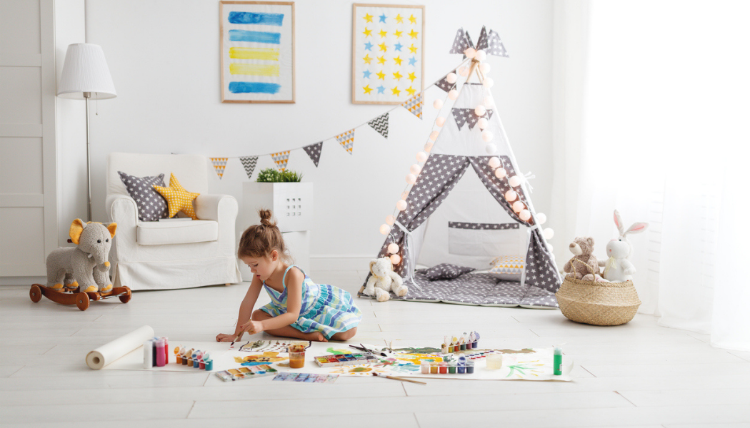 Spielerische Akzente können Sie mit Motiven die die Phantasie anregen setzen. Das kann zum Beispiel eine Bettwäsche mit Sternchen-Motiv, ein Kissen in Form einer Wolke oder ein Teppich mit Weltraum-Szenerie sein. Accessoires wie Pflanzen, Bilder oder Teppiche mit Tiermotiven runden den Look perfekt ab.