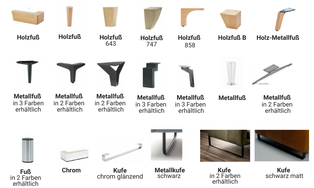 Stilecht bietet eine riesige Auswahl an Möbel-Füßen an. Für eine Sitzhöhe von 42 cm empfiehlt der Hersteller eine Fußhöhe von 7 cm und für eine Sitzhöhe von 45 cm einen Fuß mit 10 cm.