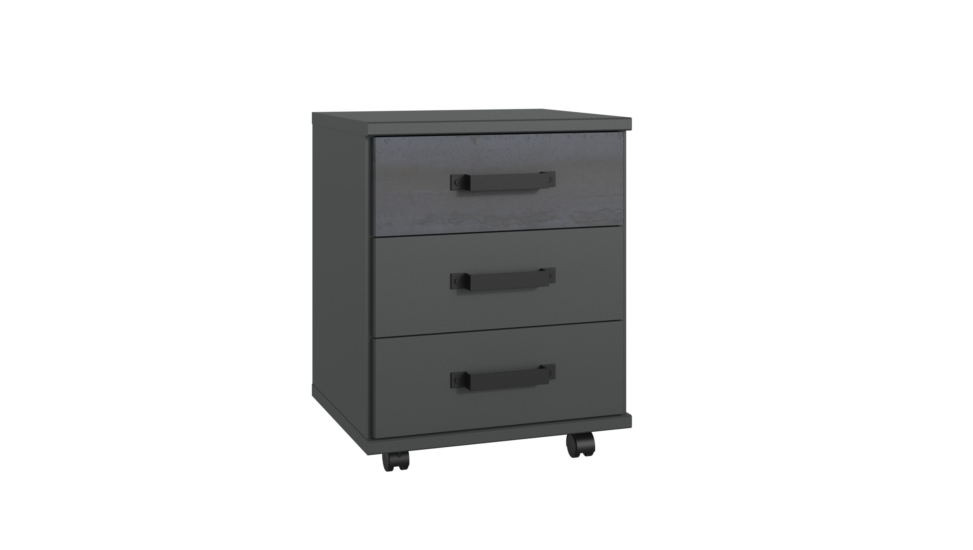 AusführungSchwarzstahl (Folie)Ausstattungmit 3 SchubkästenWissenswertesHergestellt in Deutschland.Lieferumfang1 Rollcontainer