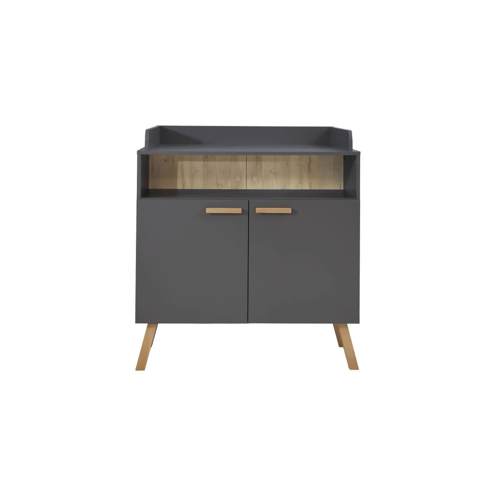 AusführungKorpus und Front: WeißGriffe: Kunststoff in silberfarbenAusstattungpflegeleichte Melaminoberflächenmit abnehmbaren Aufsatzseiten1 offenes Fach2 Türen1 EinlegebodenWissenswertesHergestellt in Deutschland.Lieferumfang1 Wickelkommodeohne Dekoration / Wickelauflage / Babybett