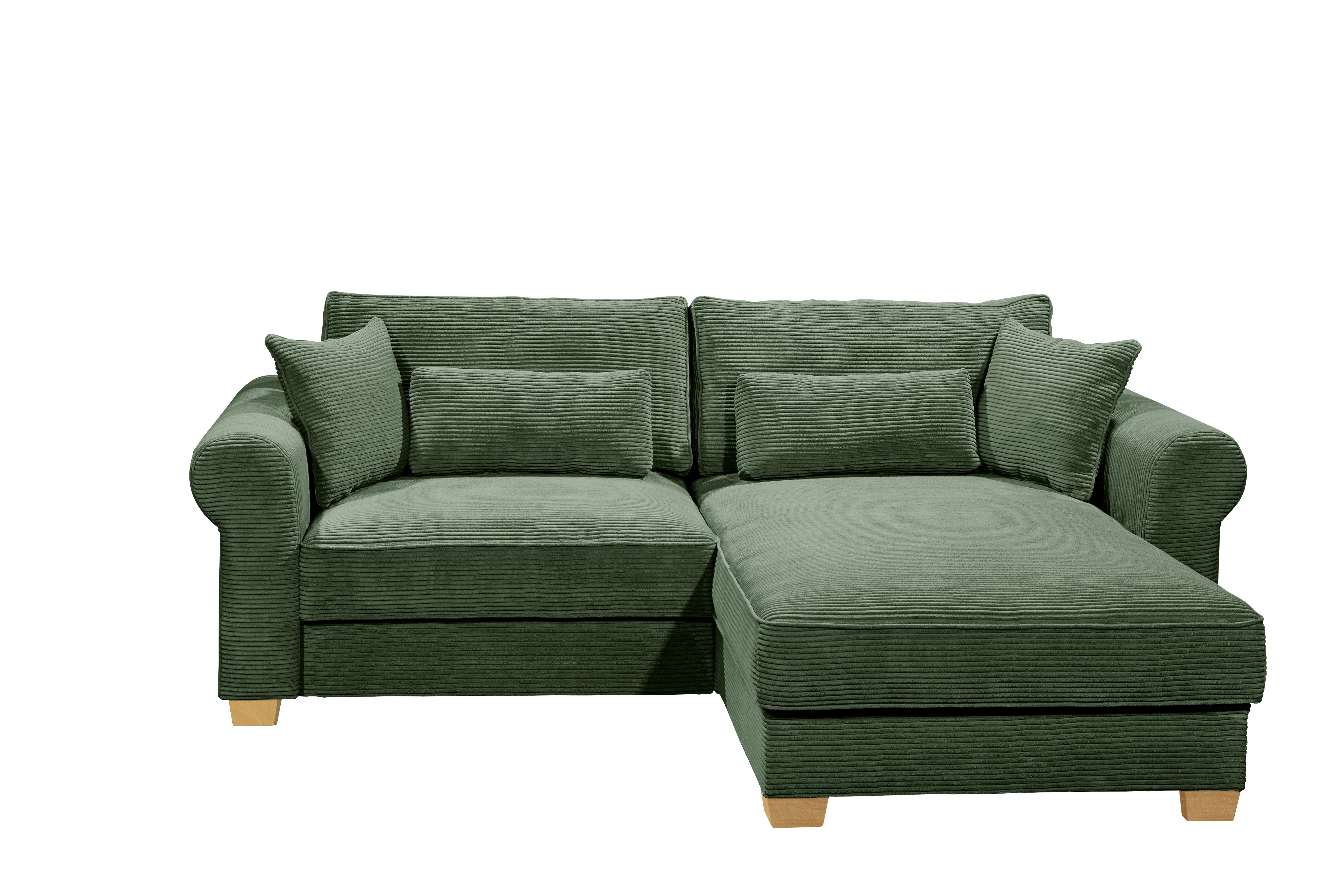 | Ausstattung Polster: | Ottomane rechts links wählbar, Rücken echt, inkl. Bettkasten, inkl. Kissen |