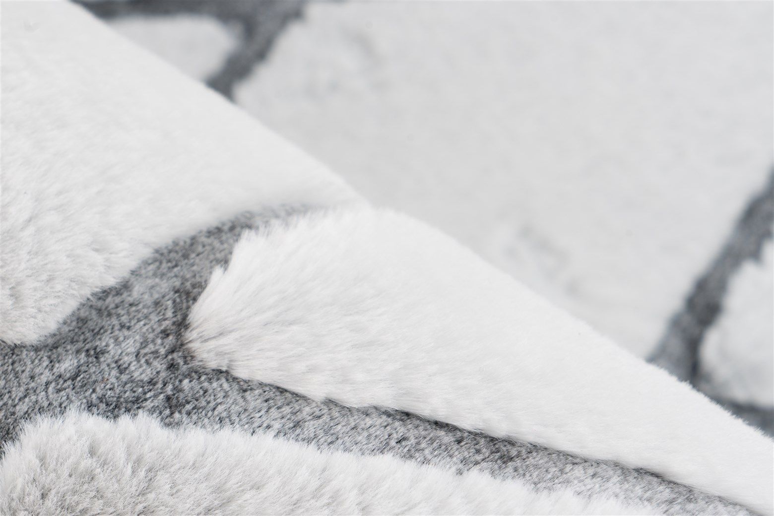 Der besondere Look dieses Hochflorteppichs zeichnet sich durch das attraktive geprägte Muster aus, das für einen attraktiven 3D-Effekt sorgt. Durch die geometrischen Formen des Musters erhält der Teppich zudem einen stilvollen Retro-Charakter. Der ansonsten schlichte und einfarbige Flor kann sich in jedem Wohnraum sehen lassen und lässt sich dank der schlichten Eleganz mit jeder Einrichtung kombinieren. Die kuschelige Oberfläche sorgt für eine gemütliche Atmosphäre im Raum. In Räumen mit Fußbodenheizung kann der Teppich ebenso problemlos ausgelegt werden.