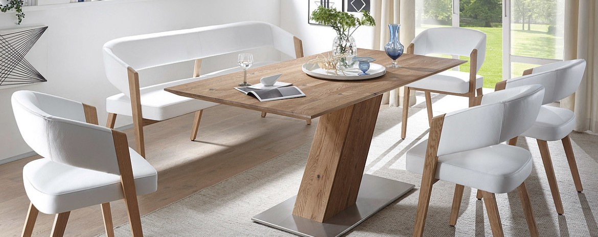 Das Esszimmer ist ein zentraler Ort in jedem Zuhause, an dem nicht nur Mahlzeiten eingenommen, sondern auch gemeinsame Momente geteilt werden. Ein entscheidendes Element für die Gestaltung dieses Raumes ist der Esszimmertisch. Das Sortiment unserer Hersteller bietet eine Vielzahl von Stilen, Größen und Materialien, um den individuellen Bedürfnissen und Vorlieben gerecht zu werden. In puncto Materialien stehen verschiedene Optionen zur Auswahl, darunter Holz, Glas, Metall und Kunststoff. Holztische strahlen eine warme, natürliche Atmosphäre aus und sind in unterschiedlichen Holzarten wie Eiche, Nussbaum oder Akazie erhältlich. Glas sorgt für eine moderne Ästhetik und verleiht dem Raum ein luftiges Ambiente. Metallische Tische können mit ihrer schlichten Eleganz punkten, während Kunststofftische eine praktische und leicht zu pflegende Alternative darstellen.