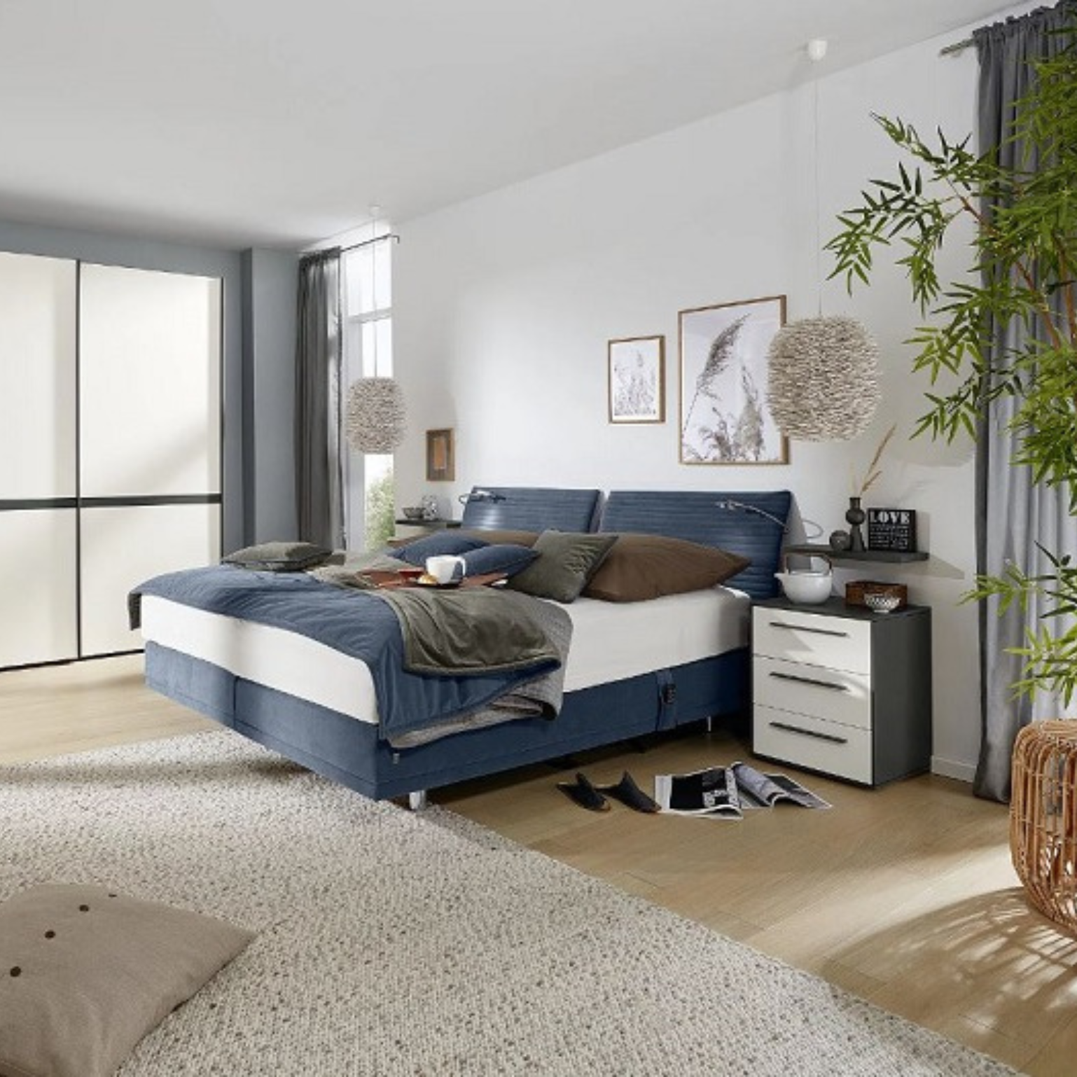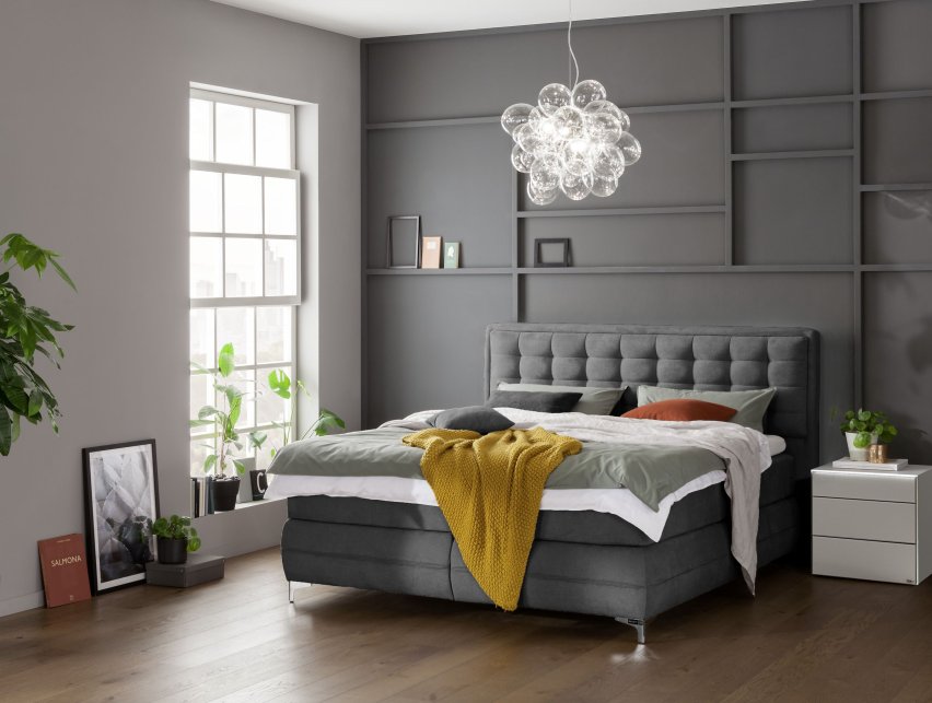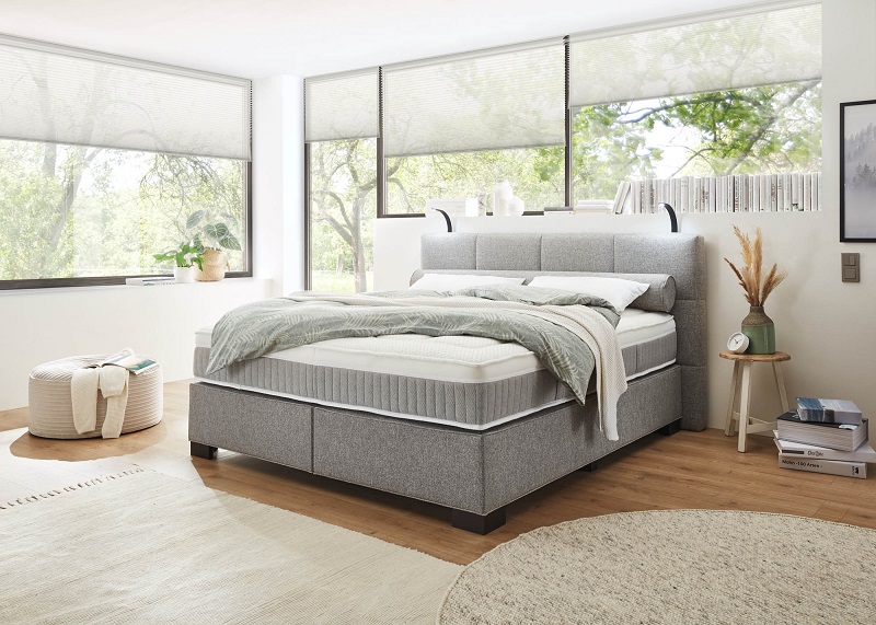 Wir bieten wir Boxspringbetten in verschiedenen Maßen an – von platzsparenden Einzelbetten bis zu großzügigen Doppelbetten. So findet jeder seinen idealen Ruheplatz. Die richtige Beleuchtung setzt Akzente und schafft eine behagliche Atmosphäre im Schlafzimmer. Unsere Boxspringbetten können mit integrierter LED-Beleuchtung am Kopfteil oder flexiblen Leseleuchten ausgestattet werden, um für stimmungsvolles Licht und praktische Annehmlichkeiten zu sorgen.