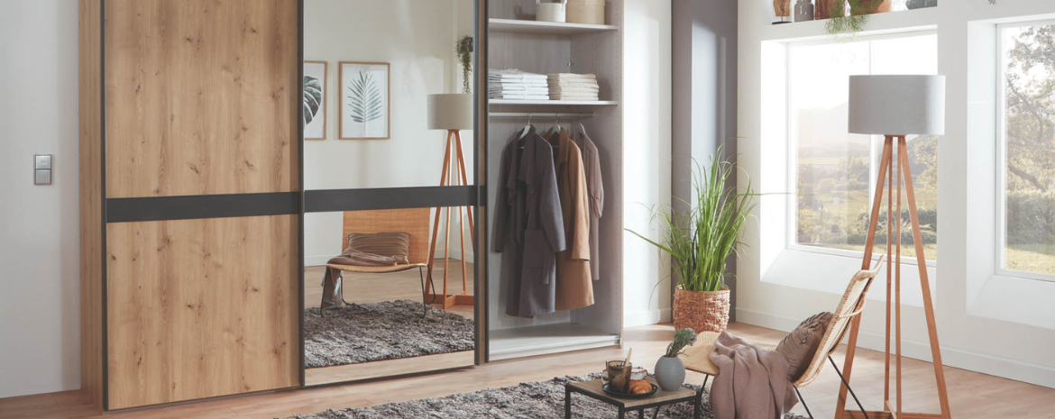 Von geräumigen Schränken mit klassischen Holzoberflächen bis zu modernen Schiebetürenschränken mit glänzenden Akzenten – jeder Kleiderschrank wurde mit Liebe zum Detail angefertigt. Praktisch und funktional, unsere Kleiderschränke sind durchdachte Stauraumlösungen, um Ihre Kleidung, Schuhe und Accessoires geordnet zu halten. Verstellbare Regalböden, praktische Schubladen und clevere Aufbewahrungsmöglichkeiten machen das Finden und Organisieren Ihrer Garderobe spielend einfach.
