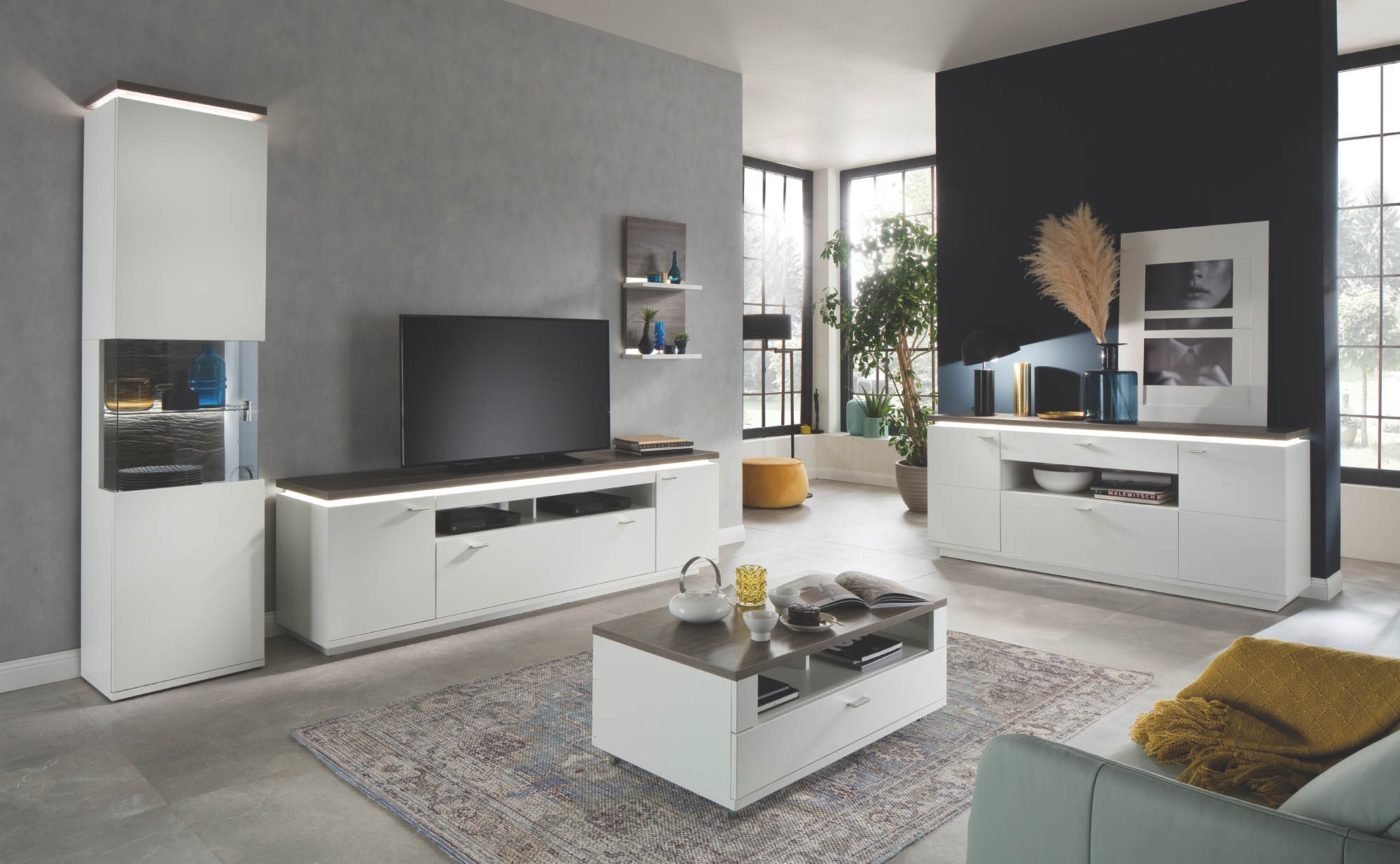 Bei Möbel Brotz finden Sie Wohnwände in unterschiedlichen Stilrichtungen von klassisch bis modern. Egal ob Landhausstil oder minimalistisches Design – bei uns ist garantiert etwas Passendes dabei. Denn wir wissen, dass jeder individuelle Vorlieben hat und ein harmonisches Ambiente schaffen möchte. Auch in puncto Materialien legen wir großen Wert auf Qualität und Langlebigkeit. Von massivem Holz über Glasfronten bis hin zu elegantem Hochglanzlack – wählen Sie aus verschiedenen Optionen diejenige aus, die am besten zu Ihnen passt.