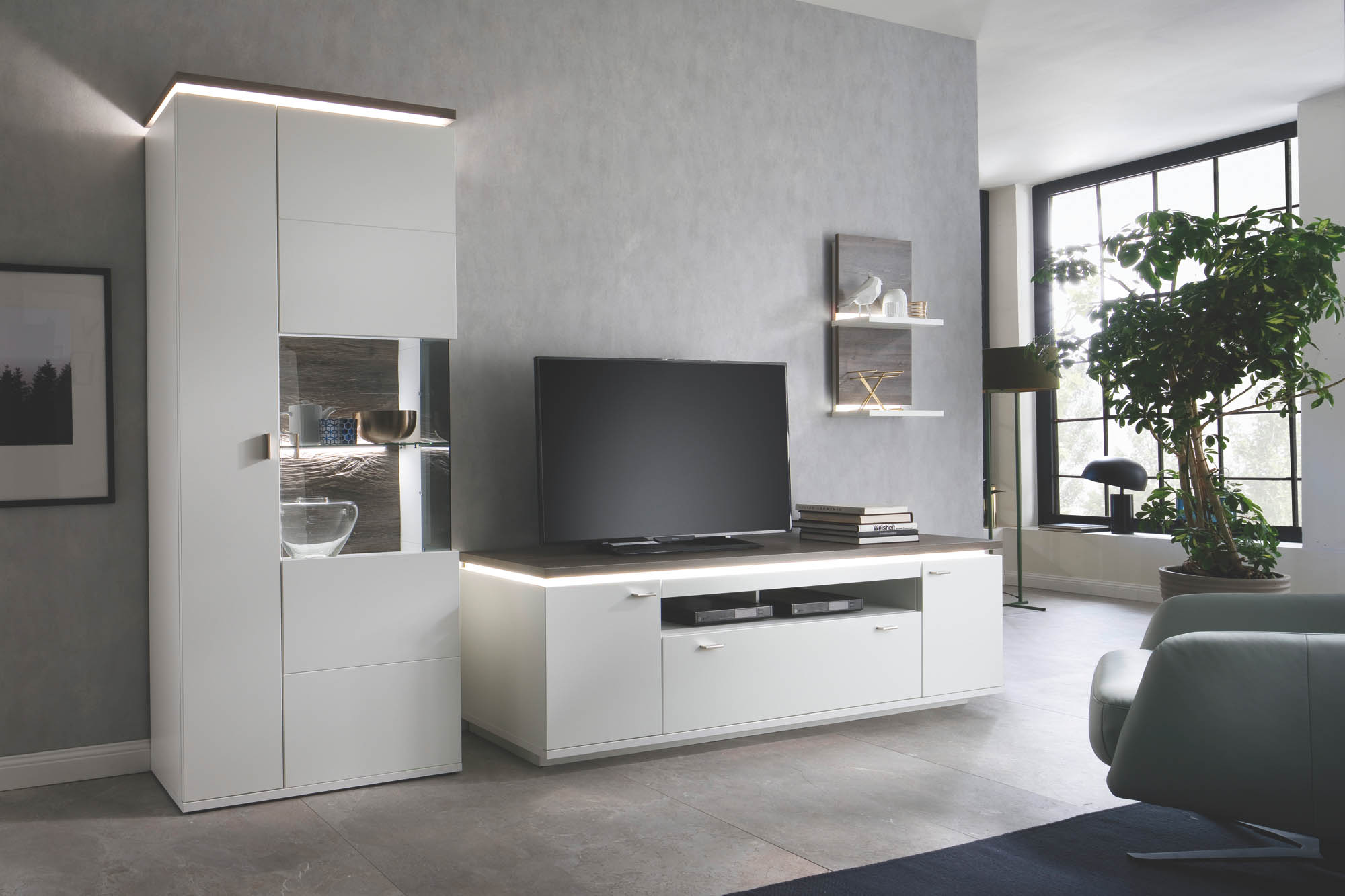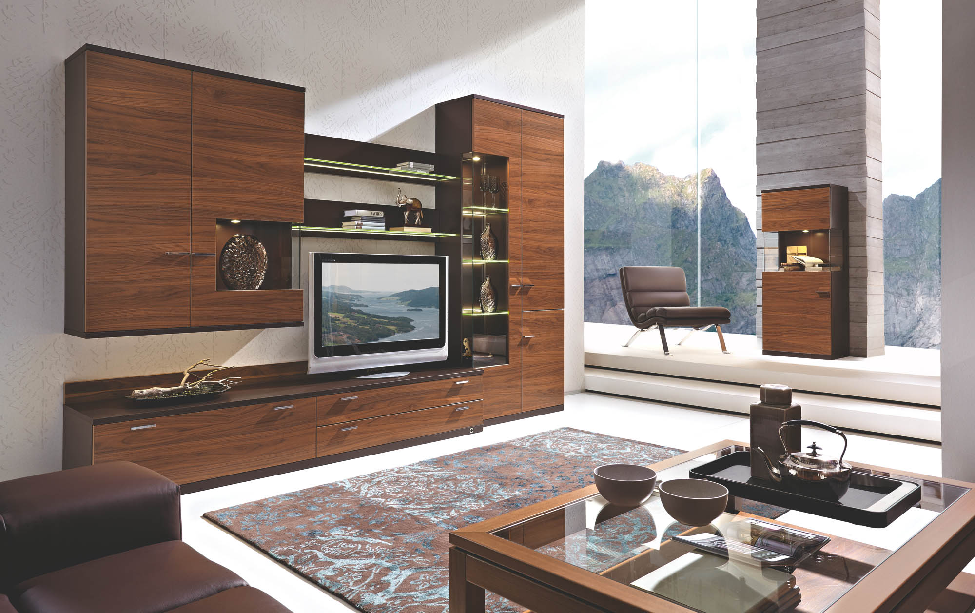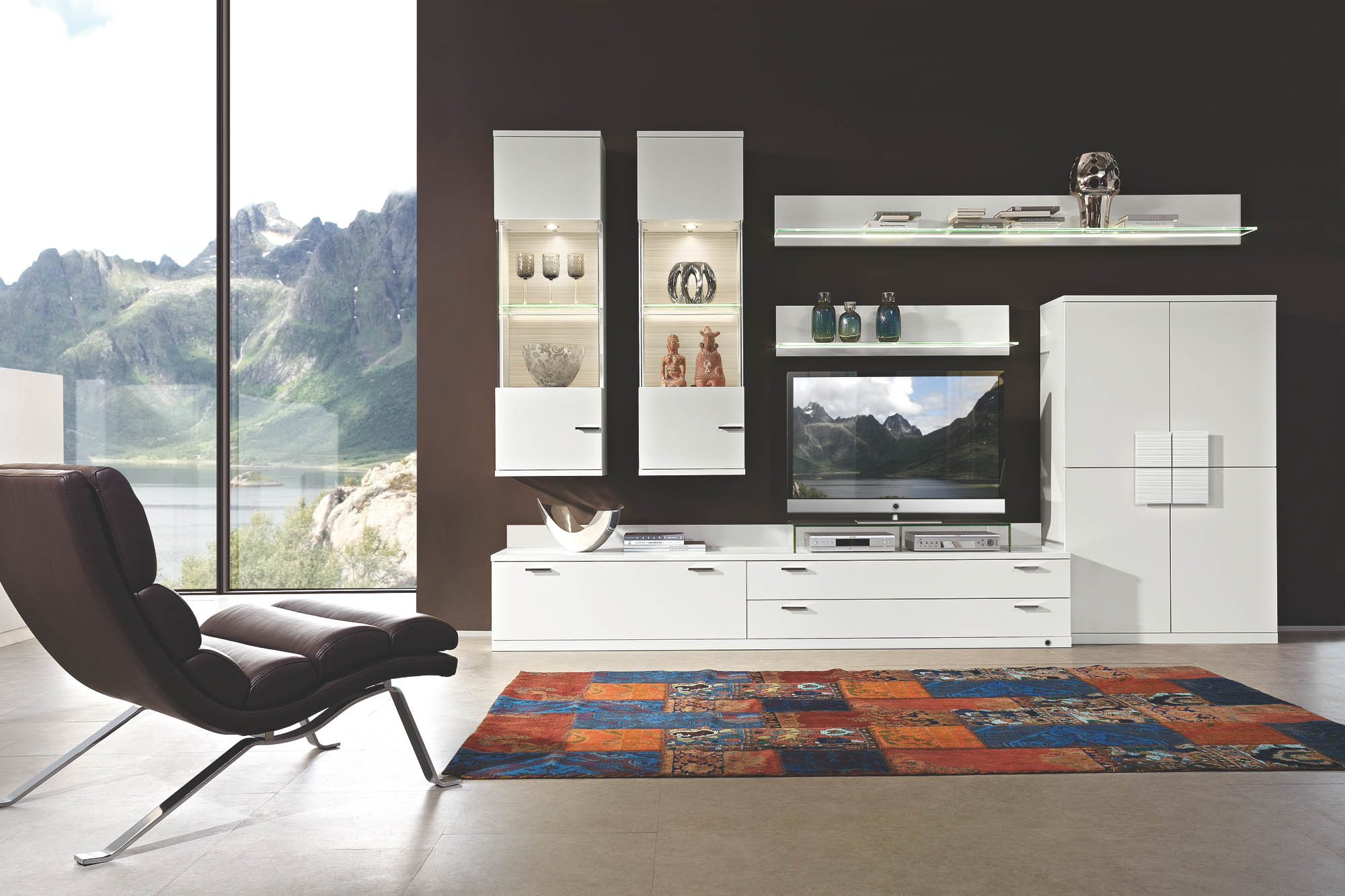 Neben dem ästhetischen Aspekt spielt auch die Funktion eine wichtige Rolle bei unseren Wohnwänden. Schubladen zur Aufbewahrung von DVDs oder praktische Regalelemente sorgen dafür, dass Sie all Ihre Utensilien geordnet verstauen können. So wird nicht nur Ordnung geschaffen sondern auch Platz gespart! Ein weiterer Pluspunkt unserer Wohnwände ist ihre Beleuchtungsmöglichkeiten: LED-Lichtelemente setzen gekonnt Highlights im Raum und schaffen so eine angenehme Atmosphäre zum Entspannen.