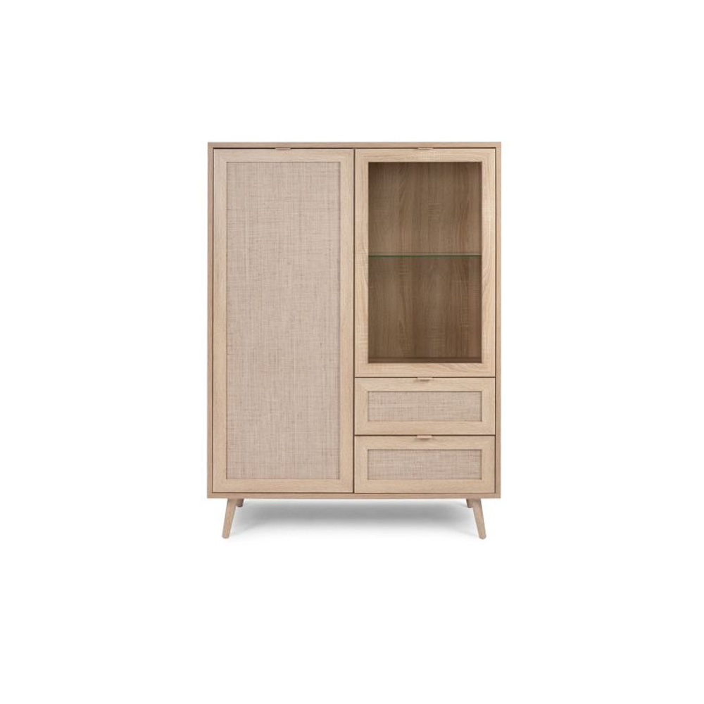 die moderne Note besticht durch die Kombination aus Glas, Metall und MDF in Sonoma Eiche